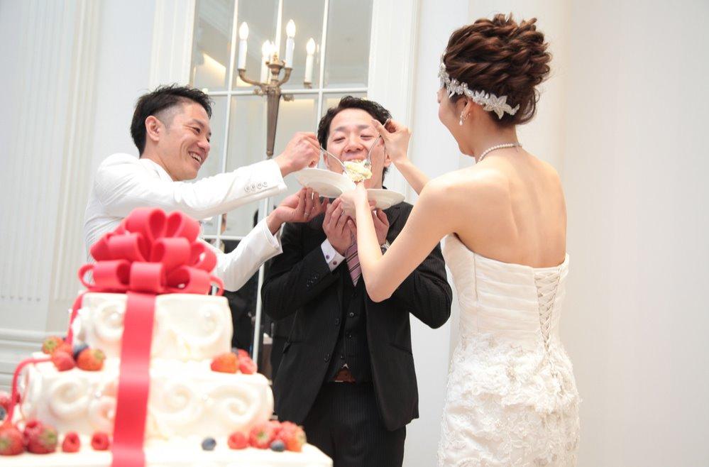 色んなゲストに感謝を伝えたいお二人は、新郎が産まれてからずっと一緒にいた双子の弟にサプライズでケーキバイトを行いました。今までずっと一緒に人生を進まれたご兄弟に、今日も一緒だよ!と思いを込めて行った演出ではゲストも皆様大盛り上がりでした。