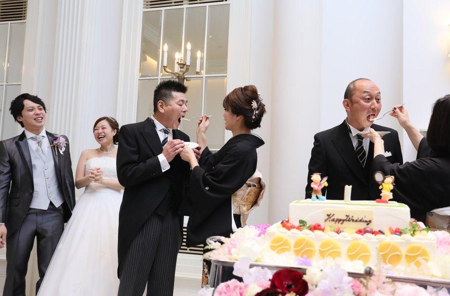 親御様には何不自由なく育ててもらい、どんな時も応援をしてもらって感謝をしているというおふたり!また親御様の事を尊敬されていました。親御様みたいな夫婦を目指しますという意味を込めお手本バイトをお願いいたしました。おふたりも親御様も笑顔な素敵なシーンとなりました。