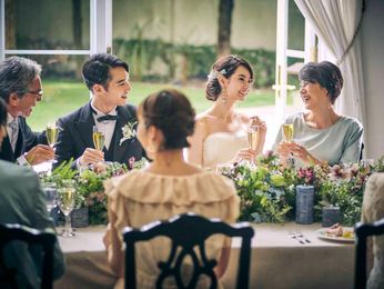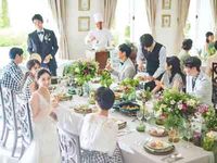 パーティ会場は人数に合わせた雰囲気にできるのでアットホームな雰囲気で、ゲストとの会話や、写真もたくさん取ることができる、記憶に残る一日に。ガーデンと一続きになっているから、ガーデンでもゆったり過ごせて嬉しい。