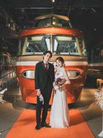 展示車両を背景にロマンスあふれる挙式を叶える「ロマンス人前式」。人前式挙式は、ゲストに結婚の誓いを立て、証人になってもらうスタイルの結婚式。時代を彩ったロマンスカーが並ぶギャラリーをオリジナルのバージンロードと装花で飾りおふたりを祝福します。