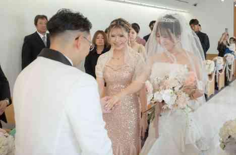レンブラント海老名にはチャペルが2つあり、おふたりは白を基調とした「ホワイトチャペル」を選択。 新郎さまのジャケットセレモニーは大切なお母さまに。新婦さま入場は年の近い妹さまと。またリングガールは姪っ子にお願いして、枠にとらわれないおふたりらしいスタイルで執り行われました。 おふたりとも入場時は緊張感にあふれてましたが、指輪交換の際は自然な笑顔が溢れとても和やかで挙式となりました。