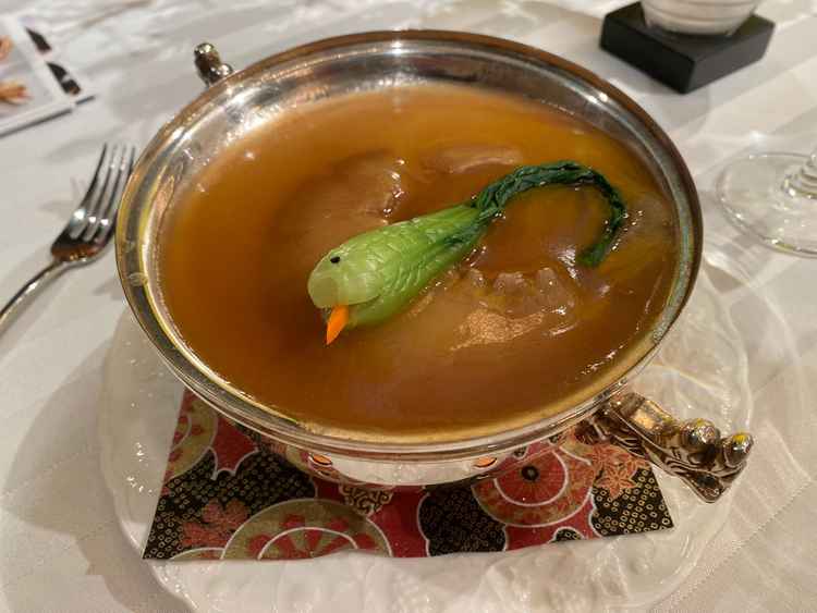 前菜とフカヒレ、メインの牛フィレ肉を頂きました。 フカヒレは丸ごと贅沢に温かいお皿に乗せられており最後の一口まで非常においしかったです。 メインの牛フィレも火入れが絶妙で非常に美味しかったです。