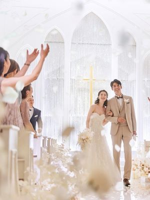 ガーデンでもチャペルでも可能な人気のフラワーシャワー。 ゲストの祝福に包まれる最高の瞬間は、たくさんの笑顔であふれるから、ゲストにとっては貴重なフォトタイムにも! ゲストとの距離が近いのも魅力的なチャペルだから一生に一度の大切な時間をすごして♪