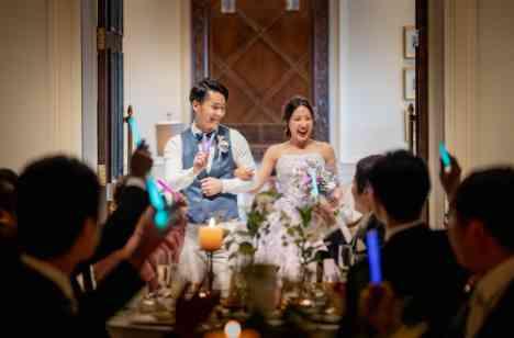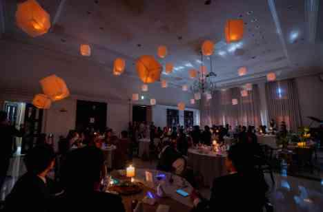 結婚式の締めくくりとして、その場にいた皆様でランタンをリリースをしました。ご新婦様の憧れであったランタンをリリースした披露宴会場内は、幻想的な雰囲気に包まれ、ゆっくりと自然に拍手が巻き起こっていました。おふたりにとっても、出席された皆様にとっても忘れることのできない瞬間にできたのではないかと感じています。