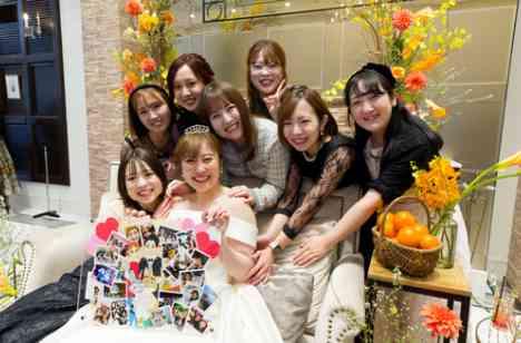 会場内に入ると、ふたりのメインテーブルはなく、ソファでセッティングされた装飾が。背景にも装飾が施され、ゲストと撮影するお写真はとても彩り豊かでふたりらしい雰囲気に。ドレスも全身見える・かつゲストと誓い距離で楽しめるフォトタイム。かけがえのない大切なゲストと過ごす時間は一生の宝物に。ゆったり歓談の時間ができるのも全館貸切であるアーカンジェル迎賓館の特徴。