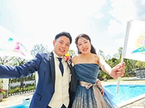 思い描くイメージを形にできる自由な貸切空間。プランナーをはじめ、スタッフの親身な対応が決め手になった 演出に力を入れたかった為、自由度の高い貸切空間は理想的。「ガーデンのプールが綺麗で青空とマッチする風景に惹かれました。プランナーさんの対応が非常に良く、『この方にお願いしたい』と思ったのが決め手。演出体験の際のスタッフさんの表情や雰囲気も良く、ゲストにも快適に過ごしてもらえると感じました」