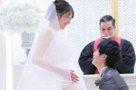 挙式はご家族やご親族の皆様とアットホームで緊張しない時間を過ごしたいご希望でした。そして「お腹の中の赤ちゃんにも幸せにすることを誓います」という想いを込めて、ご新婦様のお腹に誓いのキスをしていただきました。
