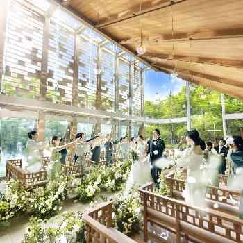 光・緑・滝の【独立型チャペル】溢れんばかりの自然光が憧れの花嫁姿を美しく引き立ててくれる