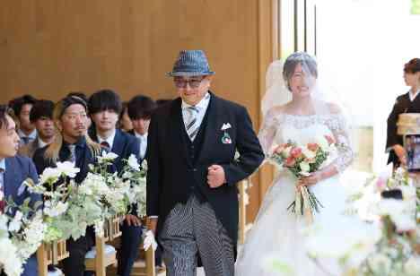 バージンロードとゲストの距離が近いのがKOMOREBIチャペルの大きな特徴。挙式前、とても緊張した面持ちのご新婦様でしたが、扉が開いて大好きなみんなの顔が見えて、直接おめでとう声をかけてくれるゲストもいるので、一気に緊張がほぐれて笑顔が溢れる幕開けとなります。半分以上がガラス張りでできている為、解放感たっぷり。ゲストも自然と声のボリュームが上がりアットホームな雰囲気を創ってくれます。