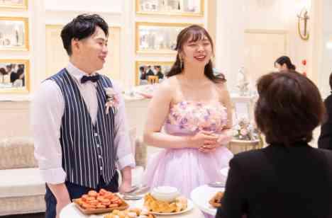 甘いものが好きなおふたり、。おふたりからもスイーツを配りおもてなしをしました。ゲストと近い距離で会話ができとってもアットホームな雰囲気となりました ゲストの方々も色々な種類の中から好きなスイーツを食べておふたりと写真を撮ったり、フリータイムのような時間となり普段通り会話されていてとっても楽しそうでした!!