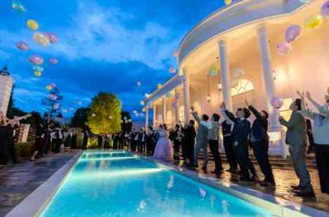 夕暮れのロマンチックな雰囲気でのバルーン演出♪ パステルカラーのバルーンが青みが立った夕暮れのそらを舞う光景はとても幻想的!ゲストみんなで楽しめる参加型の演出に参列者から「わー!」と素敵なリアクションで溢れました! 念願のバルーン演出を行えてとても満足して頂き、ゲストの方々にも楽しんで頂けました。