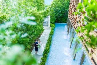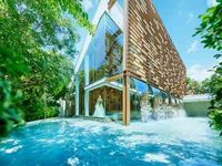 光と水と緑が調和する独立型チャペル。「KOMOREBI」は、少人数でも開放感たっぷり。木の温もりを感じる空間で、ゲストとの距離が近く、感動的なセレモニーが叶います。挙式後はガーデンで会話を楽しむのも素敵。