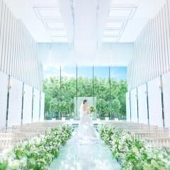 【緑×空×光のチャペル体験】開放感あふれる天井高6m&5万個のクリスタルシャンデリアが輝く最上階のチャペルは一目惚れ花嫁が続出。広い窓から降り注ぐ自然光に包まれて花嫁気分で入場体験を♪