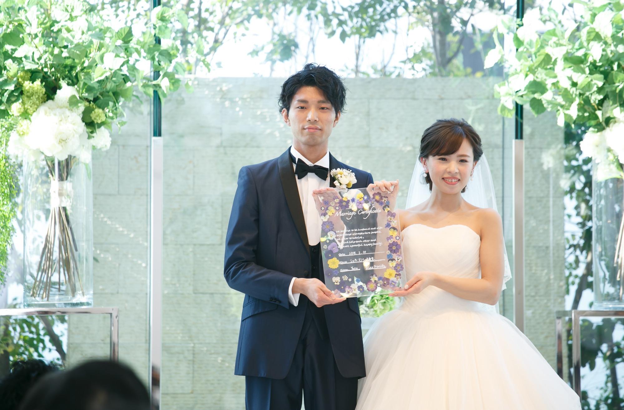 おふたりらしさ溢れる人前式は、リングピローや、結婚証明書もご新婦様のお手作り。温かさにつつまれた、感動と笑顔がたくさんの挙式シーンになりました。 挙式後にはブーケトスとさらに、ご新郎様からのブロッコリートスも盛り上がりました♪