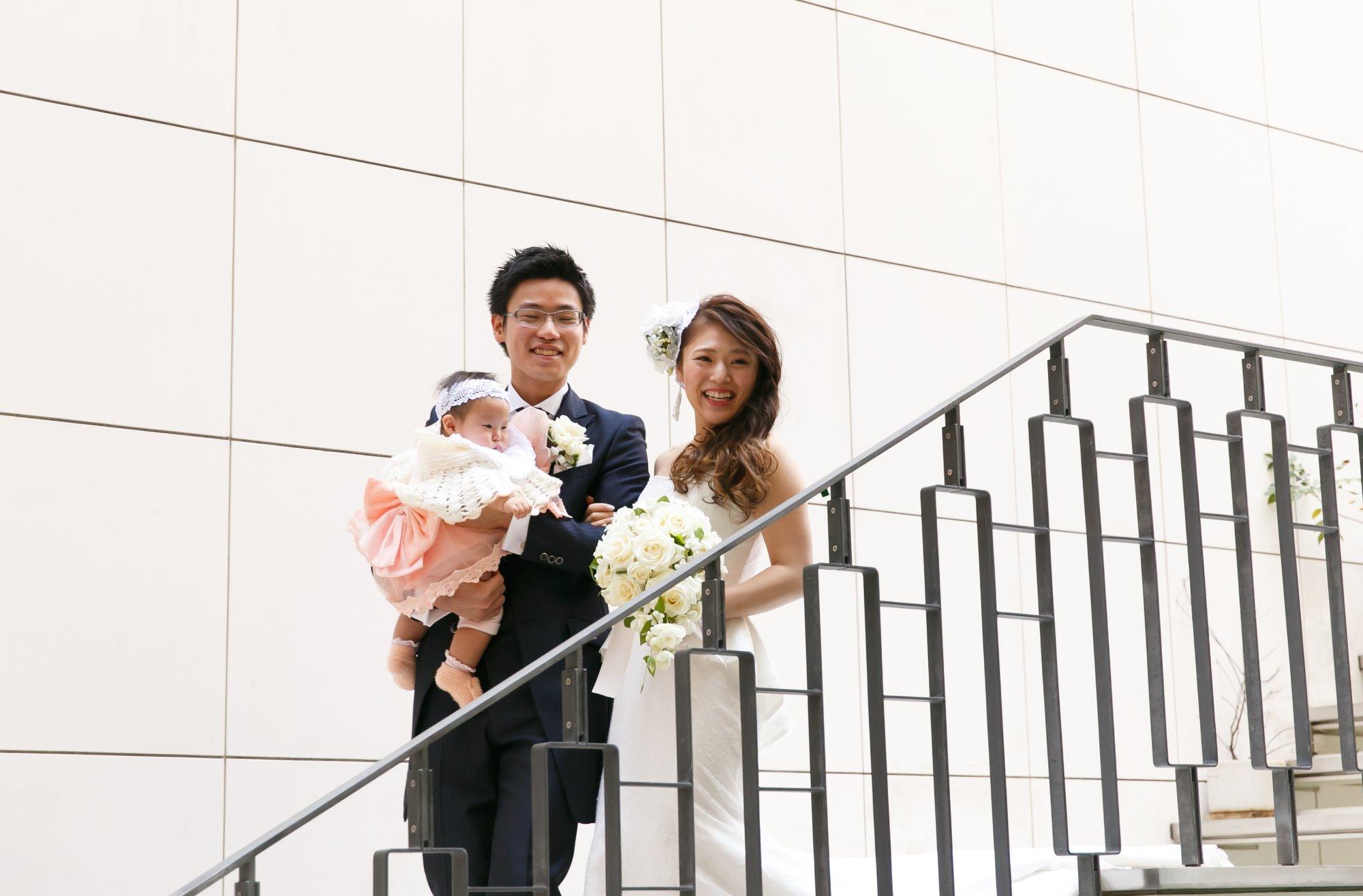 披露宴の入場シーンではゲストに内緒でテラスの階段よりサプライズ入場☆ カーテンが開き3人の姿が見えた瞬間には、会場から歓声が上がる素敵な瞬間となりました。