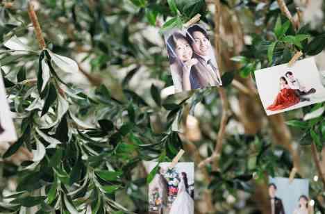 お洒落なウエルカムアイテムの中でも、特にお客様の目に映ったのは、素敵なたくさんのお写真たち。こだわりが詰まった沢山のお写真の中からおふたりが1枚1枚選ばれました。お写真の周りには自然とお客様が集まり、笑顔でいっぱいな空間となりました。とても明るく笑顔が素敵なおふたりの結婚式をご紹介させていただきます♪