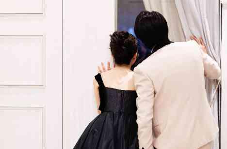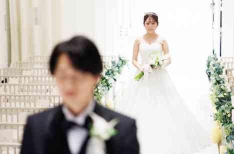 当日までどんなドレスを選んだかは秘密にしていたいというご新婦様の願いで、お支度を整えたおふたりはファーストミートへ。どんな反応をするのか楽しみなご新婦様と、少し緊張の面持ちでお待ちになられるご新郎様。 ご新婦様がご新郎様の肩を優しくとんとんと叩くと、ゆっくりと振り返ったご新郎様から優しい笑みがこぼれます。お互いのお顔を合わせた瞬間に緊張が解け、思わずおふたりからは笑顔と涙が溢れました。