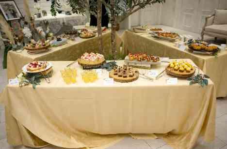 司会者の掛け声とともにホワイエの方の扉がオープン! そこにはお二人からのデザートビュッフェの演出が! ビュッフェを楽しむ皆様の姿にお二人も笑顔が絶えません♡デザート以外にもお二人との距離も近い中で、歓談や写真撮影も楽しまれ、お二人の想いだった感謝をお伝えするパーティでおもてなしの演出の1つとして和やかな素敵なお時間が過ぎたパーティでした。
