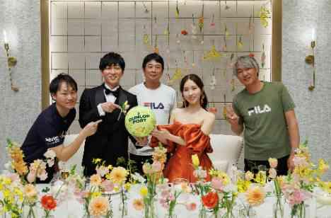 パーティ後半は、ご友人様による余興がスタート☆ ご友人様からの祝福のメッセージが込められたDVD上映もスタート!! そして上映後は、皆様よりメッセージが書かれたBigテニスボールの贈呈が!!素敵なプレゼント&余興にお二人も笑顔が溢れます♪ 皆様からの温かいメッセージに、心あたたまる素敵な余興でした♡