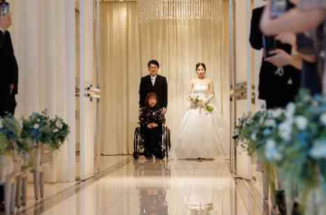 お式は、チャペルムービーからスタート。ご家族に向けて感謝の気持ちを込めて届けた映像は、お式前のご家族との特別な時間となりました。 そしてお母様と一緒に歩くマザーズロードで皆様のもとへ。 今まで支えてくださったお母様と一緒に歩く時間は、それぞれの想いとともに忘れられない感動の瞬間となりました・・・。