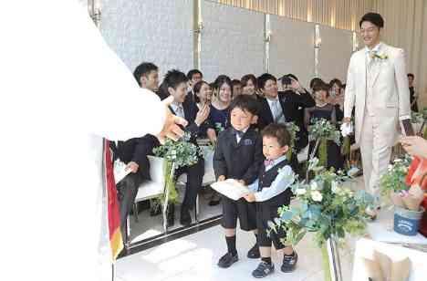 教会式でしたが、テーマにそって少しお二人らしくアレンジ♪リングボーイも登場し、会場は一気に「笑顔」につつまれました! ご新婦様が入場をされると、会場からはすすりなくお声が…「涙」溢れるとても感動的な場面でした。 挙式後には、ブーケトスとブロッコリートスで笑顔溢れる挙式になりました!