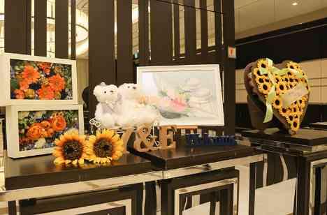 夏の結婚式でもあったので、「ひまわり」を使用したコーディネートでゲストをお出迎え♪大きく咲くひまわりは、まさに「笑顔」咲くイメージにピッタリ♪ 光の演出が出来るブルーノクリスタルでメリハリのあるご結婚式になりました!
