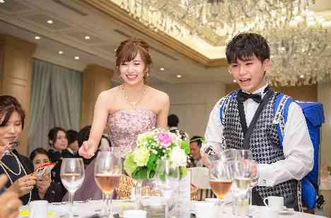せっかくお食事とお酒を楽しむ空間なら、なおさら楽しい時間を作りたい!そんな想いから、ゲストと新郎新婦様が触れ合える時間をより多く作れるようにしたおふたり☆ひとつひとつの演出にも、親御様からご友人の方まで、すべての方が新郎新婦様と会話を楽しみながら過ごせる一日を作り上げました!パーティでは、新郎新婦様の名前が飛び交い、笑い声が絶えない空間となり、おふたりの思い描く一日となりました♡