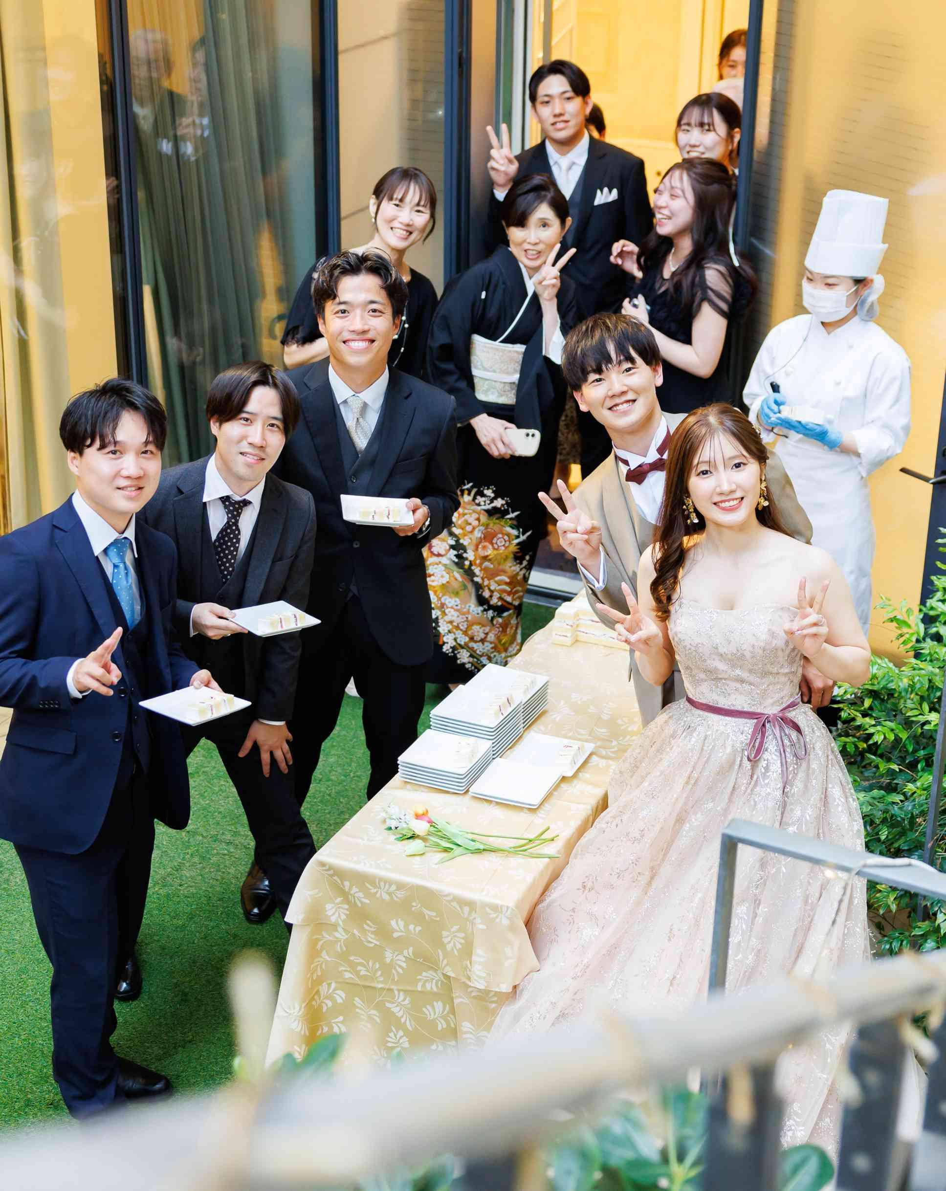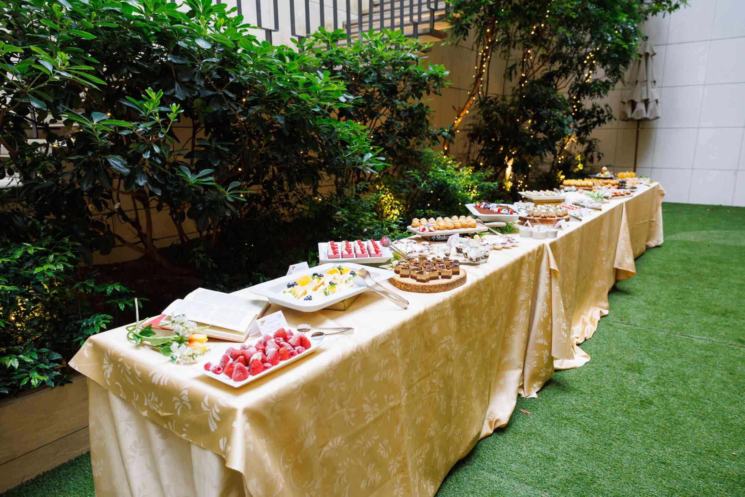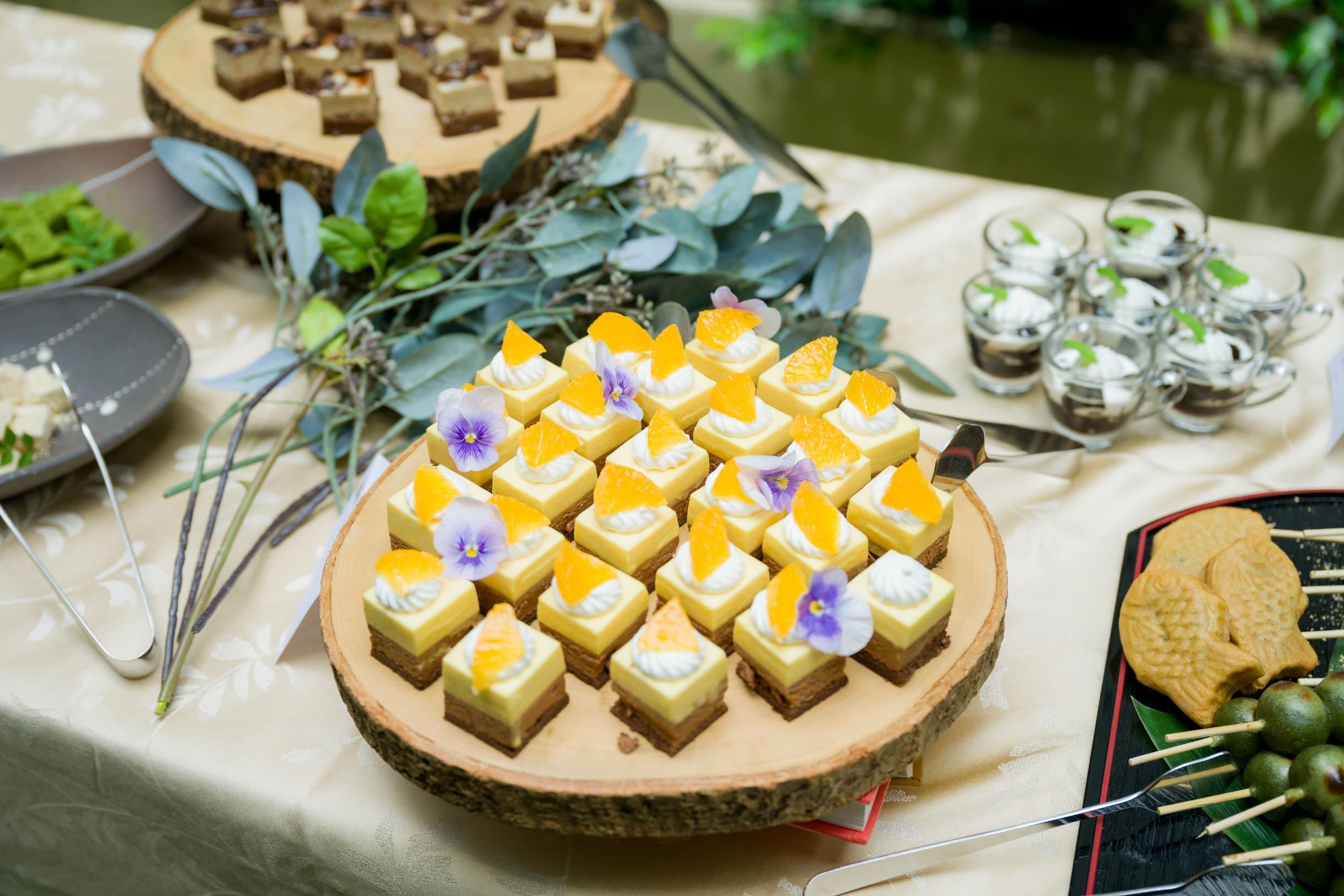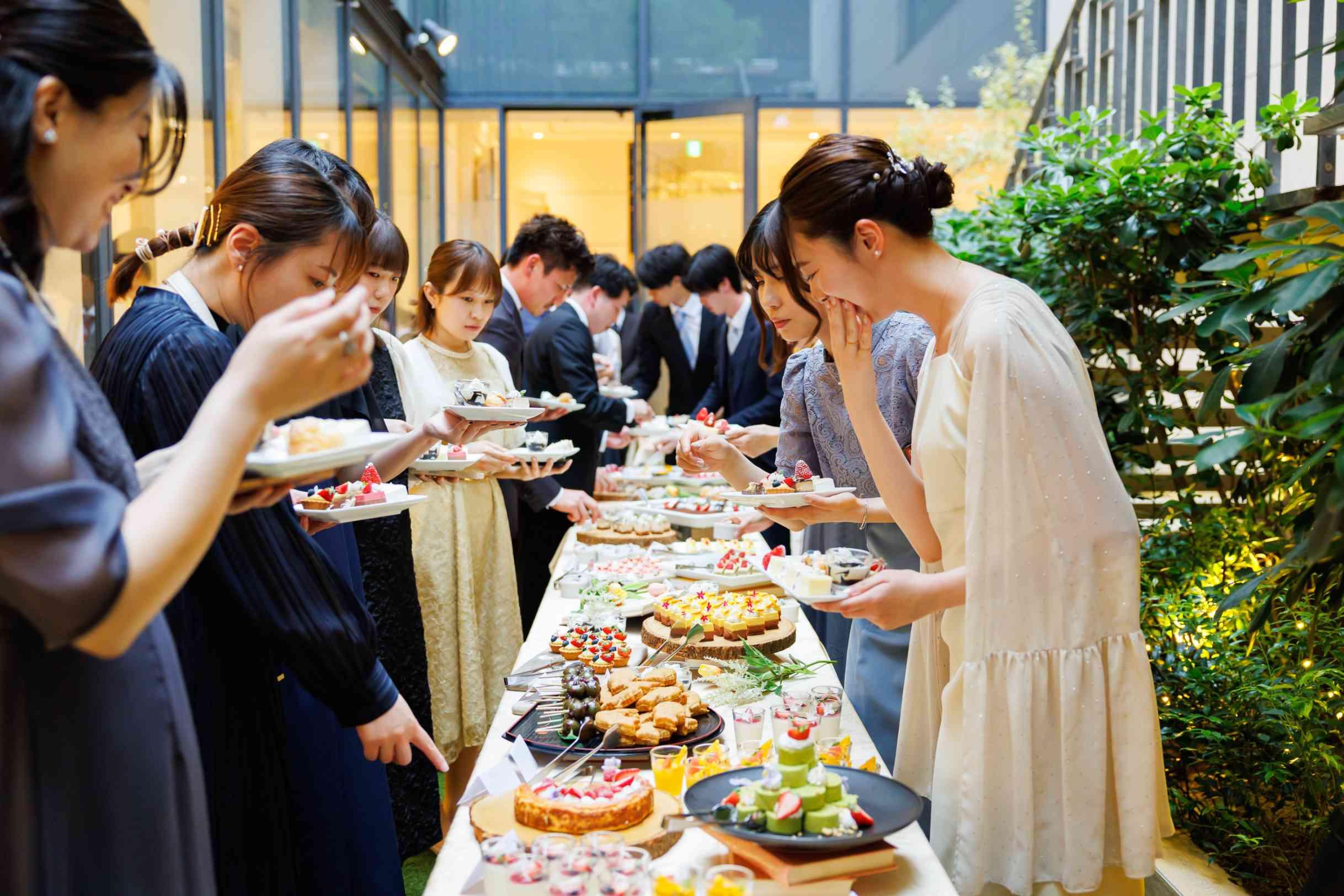 自然光に包まれたガーデンでは、アフターセレモニーやデザートビュッフェも。 緑と笑顔に囲まれた開放的な空間で、ゲストと過ごすひとときが心に残る思い出に。