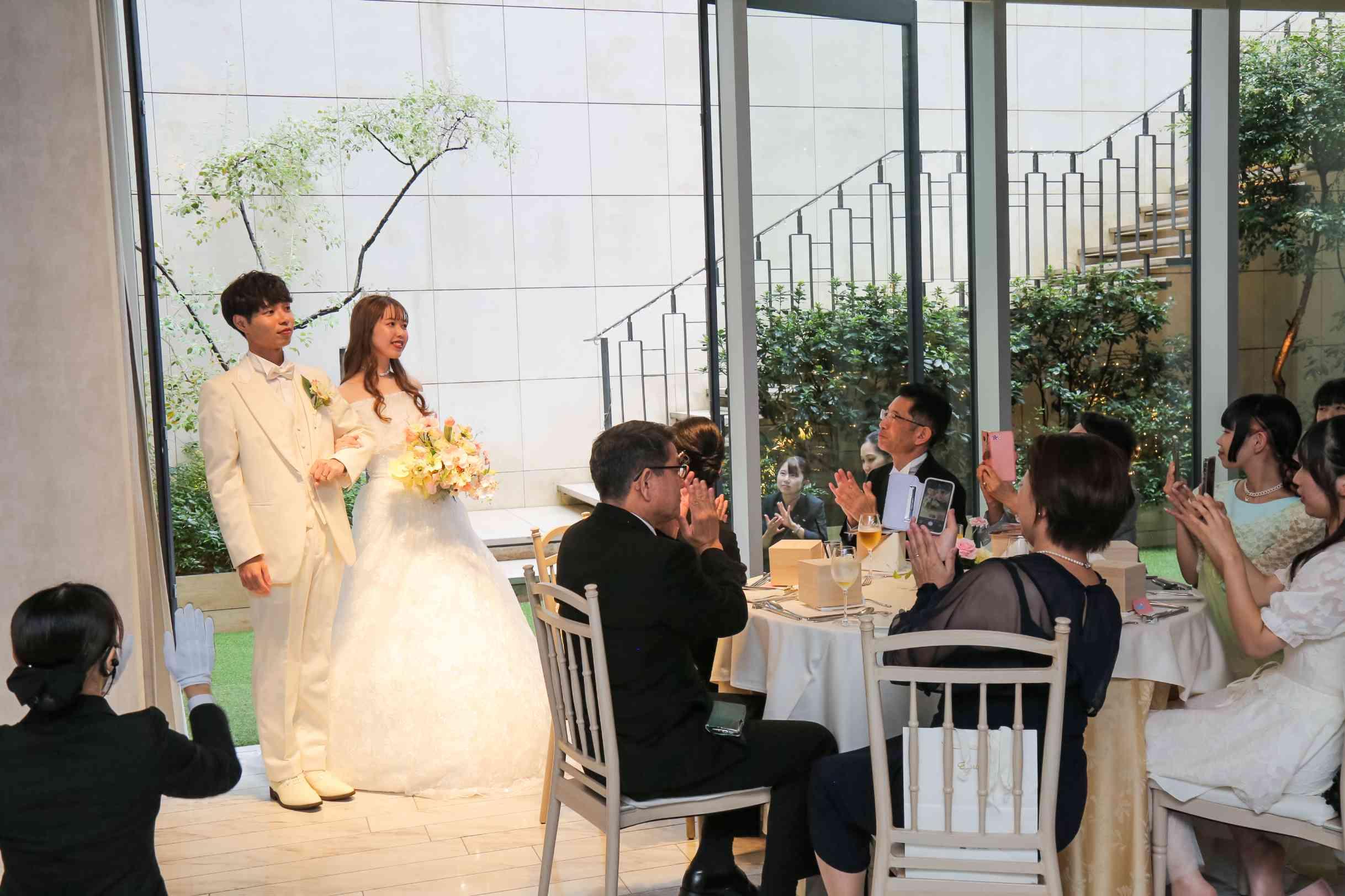 挙式後のお二人だけのお食事や、家族や近しい友人との会食でもフロアを貸切にしていただくことができるので安心。チャペル横のクリスタルルーム、披露宴会場のホワイエ等お好みの雰囲気に合わせて会場を選べる点も◎