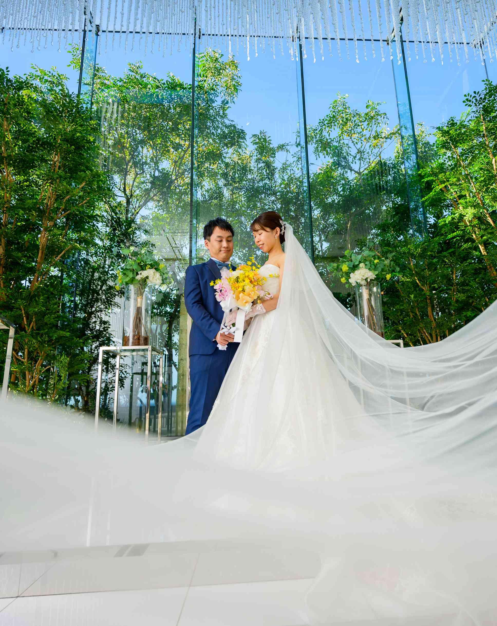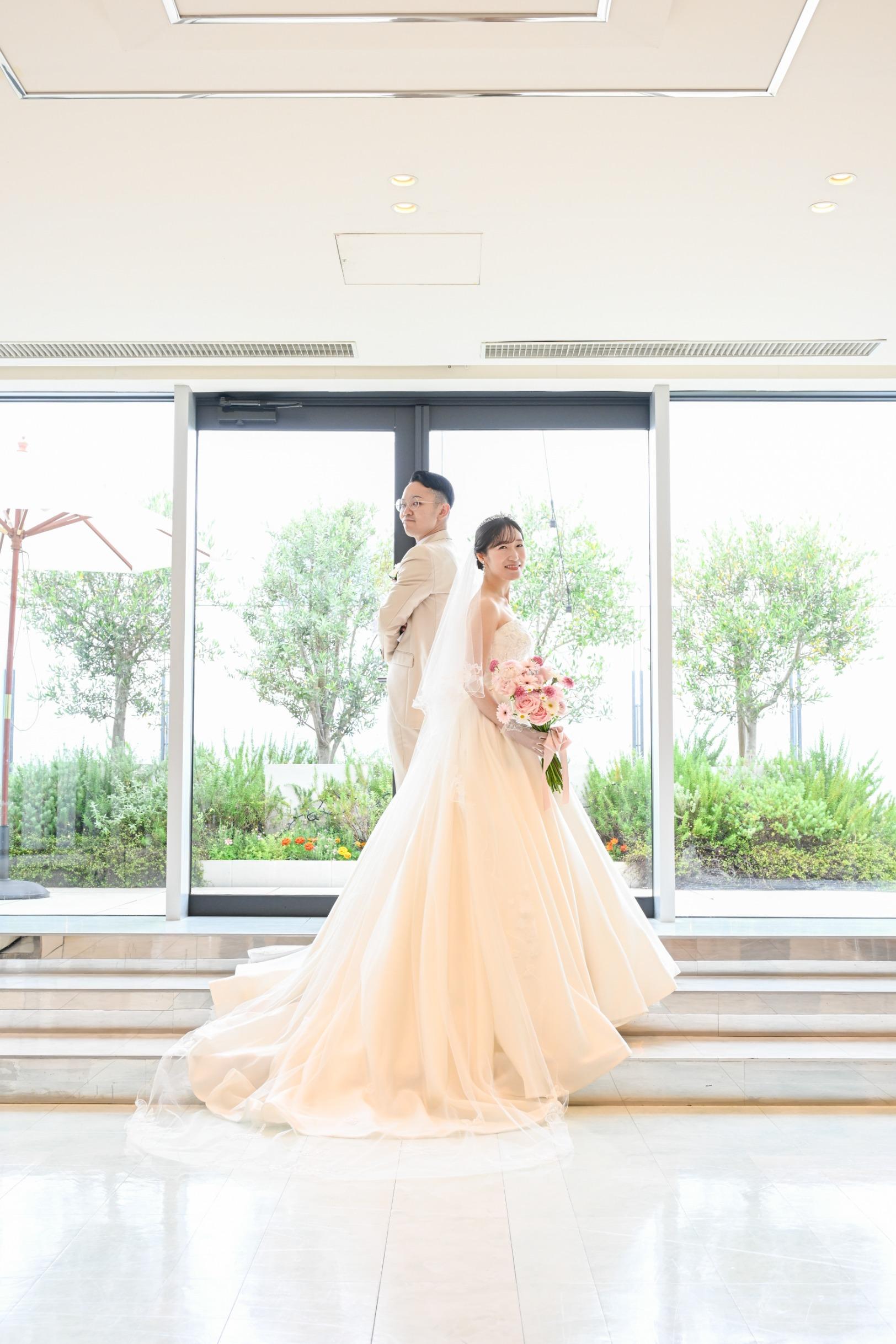 白を基調としたチャペルや緑あふれるガーデンなど、館内のすべてがフォトスポット。 自然光が差し込む上質な空間で、ふたりらしい表情を美しく残す特別な1枚を。