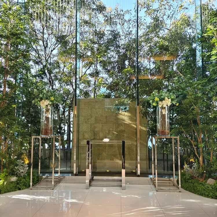 都心にありながら自然を感じられるチャペルの緑がとても映えていた。披露宴会場も開催人数に見合った大きさで良かった。