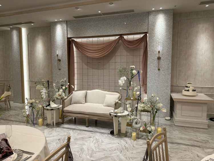 ゲストの待合室が広々としていてよかった。またホワイエスペースでウェルカムパーティーができる演出ができるのもよかった。