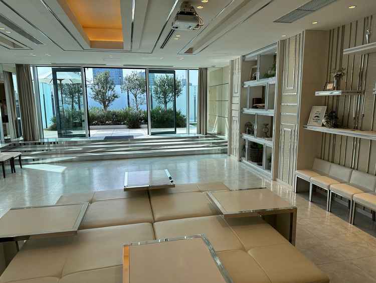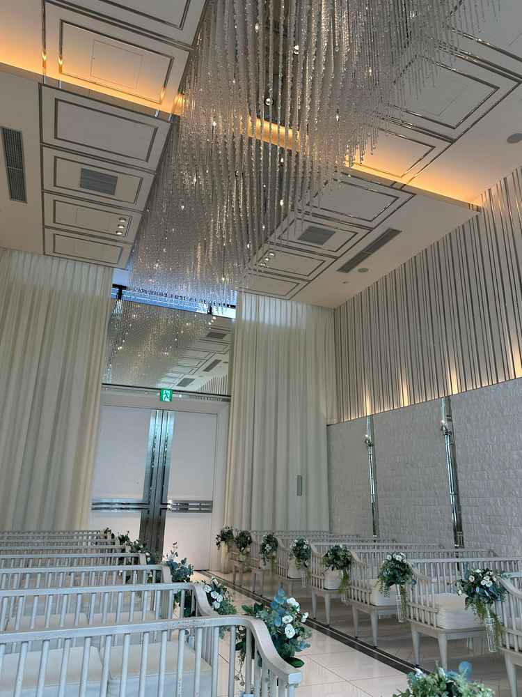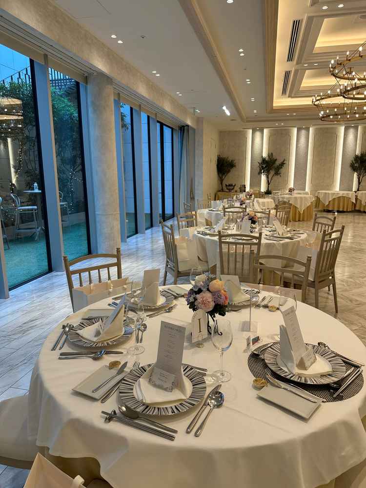 会場の雰囲気は、都会的で洗練されていながらも、自然光がたっぷり差し込む明るく開放的な空間。白を基調とした内装にクリスタルのきらめきが加わり、上品でスタイリッシュな印象。非日常を感じられる特別な雰囲気が魅力的だった。