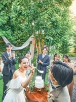 教会の外に広がる広大なガーデンに、新しく夫婦になった新郎新婦が登場、大切なゲストから憧れのフラワーシャワーで祝福を。その後はゲスト全員での集合写真や、披露宴前のガーデンパーティー、ブーケトスやお菓子撒きなど使い方はさまざま。溢れる緑と青空の下自分たち好みの演出を。
