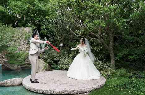 おふたりが希望された結婚式が「ゲストの方が楽しめるような1日」でした。そんなおふたりの想いをゲストの方に伝える為に参加型の演出をたくさん盛り込める用打合せを行いました。結婚式では挙式、披露宴などたくさんのシーンがございます。それぞれに参加が出来る演出を取り入れたのでゲストの方と触れ合える時間も増え、大切な方々と特別な時間を過ごすことが出来ました。