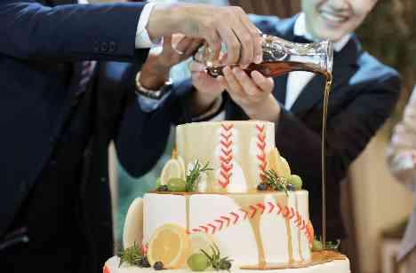 披露宴での演出の定番となっているのがウェディングケーキへの入刀です。おふたりはケーキ入刀のシーンでもゲストが参加出来る演出を用意されました♪おふたりが入刀するケーキにサプライズで友人の方を呼んで入刀前にケーキドリップを行っていただきました☆ケーキ入刀にもゲストに参加してほしいというおふたりからの願いが込められた演出です。