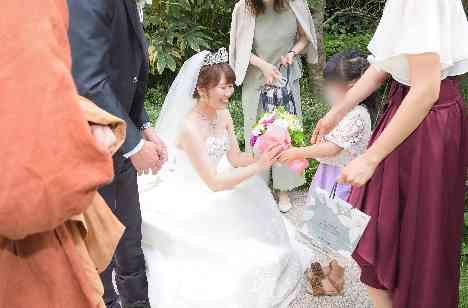 コロナ禍を考えて披露宴を行わないことをご選択されたおふたり。感動的な挙式の後にガーデンでお世話になったゲストの皆様に感謝を伝える時間を。 沢山写真を撮って、久々に会った友人と話をして、ご友人とその娘様から新婦様へ花束のサプライズプレゼントも!沢山の笑顔と感動、温かく素敵な時間を過ごされました。