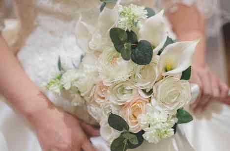 花嫁にとって大切なアイテムであるブーケ。新婦様はその大切なブーケを大好きなお母様に作っていただきました。ウエディングドレスに合わせた白基調のクラッチブーケ、カラードレスに合わせた新婦様が大好きな青基調のリースブーケ、前撮りの打掛に合わせたボールブーケ。どれもとても素敵で愛情の沢山こもったブーケでした。
