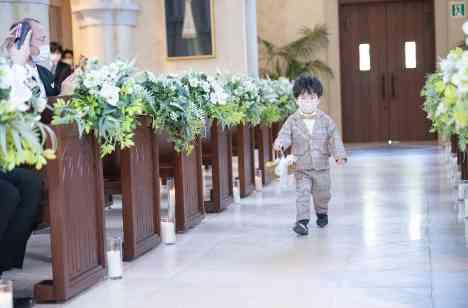見ているだけではなく結婚式には家族3人一緒に!とお話されていたおふたり。大切なお子様の一番の出番はやっぱりリングボーイ!かわいいタキシードをきて、リングを持ってきてくれる姿にゲスト全員でカメラを向けてしまうほど。リングピローはお子様が持ちやすいよう考えて新婦様が手作りされたもの。小さな天使はしっかりと大切なリングを運んでくれました。