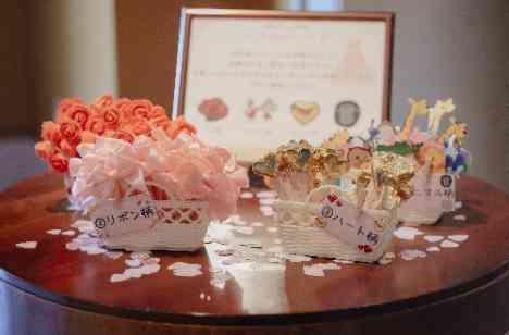 大好きなピンク色のドレスをお選びになった新婦様。ドレス色当てクイズを皆様にしていただきたいと思っておられたのですが、新婦様の好きな色がピンクだという事は皆様ご存じ!お悩みになられているおふたりとご相談し、ドレスの「柄」当てクイズにすることに!花柄・リボン柄・ハート柄、そしておふざけ枠としてアニマル柄。一つ一つワンズを手作りされました。「柄はわからない~!」と皆様お悩みになられておいででした。