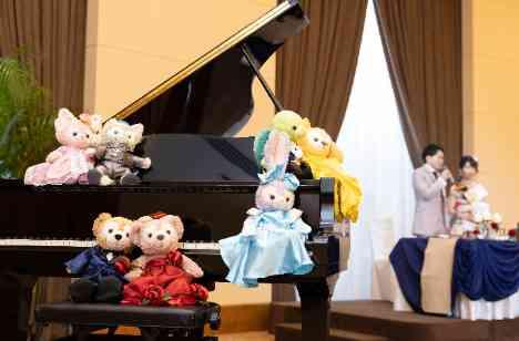 BGMにも勿論こだわりがあったおふたり。中でも再入場は「エレクトリカルパレードみたいに入場したい!」と強いご希望がございました。 受付でご用意された「新婦が抱いてくるぬいぐるみはどれ?」というクイズ。7択ある選択肢に合わせてご用意された7色のサイリウムで会場がカラフルに!BGMも相まって本当のエレクトリカルパレードのようにご入場をされました。ちなみに新婦様とお揃いのぬいぐるみ用ドレスも手作り!
