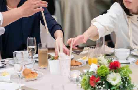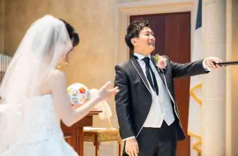 兼ねてより何かゲストの皆様にご参加いただける催しがしたいとお話されていたおふたりは「格付けチェック」を行う事となりました。ご用意された問題は「紅茶」「マカロン」「出汁」の3問!どれもおふたりのお気に入りのものとそれに合わせたお値打ちな物をご用意。代表者に参加していただくのではなく全員が必ず参加できるように工夫をしご準備されました。皆様楽しみながら迷いながらでとても盛り上がる演出となりました!