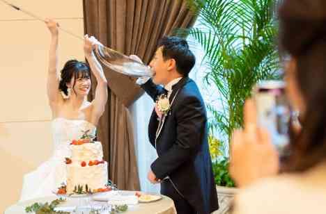 ゲストの皆様とアットホームなお時間をお過ごしになられたいとお話されていたおふたり。メインはソファ席にされ、スピーチを聞かれたりご同僚からのサプライズプレゼントを受け取られたりとゲストの皆様と近い目線で披露宴をお過ごしになられました。 そして皆様も楽しみにしていたケーキ演出!こだわりのケーキに特大のビックスプーンをご使用されたファーストバイトは大盛り上がり!笑顔いっぱいのお時間となりました。