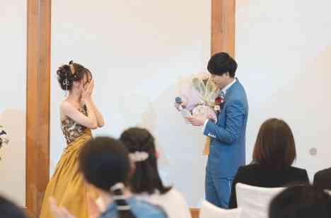 新郎様から新婦様へサプライズの花束を
