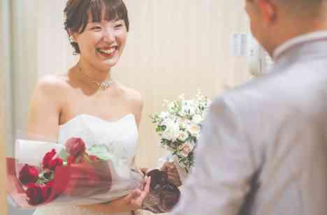 お開きして支度部屋に戻った際、新婦様を待っていたのは薔薇9本の花束を持った新郎様。 薔薇9本の花言葉は、「いつもあなたを想っています」。 突然のことに驚かれている新婦様へ花束をお渡しし、お手紙で愛のメッセージをお伝えになりました。 1日笑顔いっぱいだった新婦様ですが、この時に初めて涙をお流しになりました。 笑いあり涙あり、最幸の1日でしたね...♪