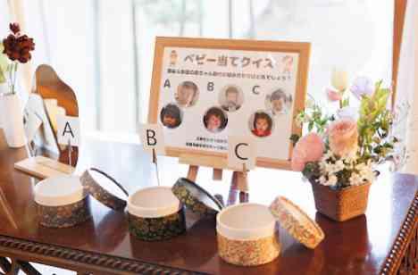受付でおふたりがご用意いただいたのは小さい頃の顔当てクイズ! ごきょうだいのお顔もダミーで交えながら作った3択を見て、ゲストの方も悩んでいらっしゃるご様子。 披露宴中には、見事正解された方の中から抽選で豪華景品をプレゼント! 用意するために小さい頃のお写真を見返していただくのも、思い出が振り返られて素敵ですね♡