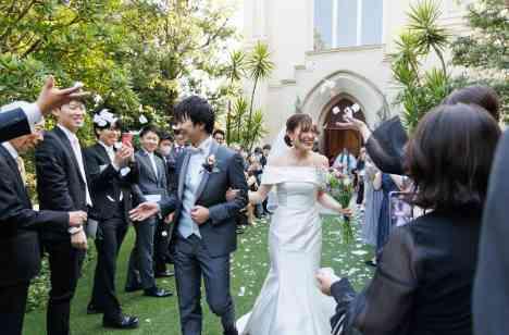 挙式後は皆様の愛でいっぱいの祝福を受けて