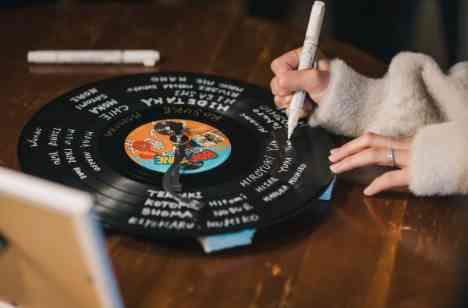 レトロでポップな結婚式にしたいというおふたりの想いをかたちにした一日。受付ではゲストの皆様にレコード時計へサインを寄せていただき、色とりどりの筆跡が盤面を鮮やかに彩りました。名前だけのシンプルなデザインだからこそ統一感が生まれ、まるでアートのような仕上がりに。これから刻まれる時間とともに、祝福の記憶も重なっていく特別なアイテムとなりました。