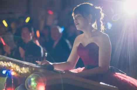 再入場ではとっておきのサプライズ!新婦様がエレクトーンを演奏しながらの入場!色当てクイズの正解を楽しみに待っていたゲストの皆様が生演奏と気づいた瞬間、驚きと歓声に包まれました。色当てクイズで配られたペンライトが会場いっぱいに輝き、まるでステージのような一体感に。音楽と光が重なり合う、華やかで印象的な再入場となりました。
