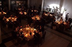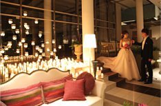 披露宴も夜ならではの演出にこだわり、ゲストとの時間を楽しまれました。お色直し入場では、入場前にゲスト全員でキャンドルリレーを行い、祝福の優しいキャンドルの光に包まれた幻想的な雰囲気の中でのご入場となりました。まるでゆっくりと時間が流れているような空間にお二人もゲストもうっとり、ゆったりとした優雅な時間になりました。